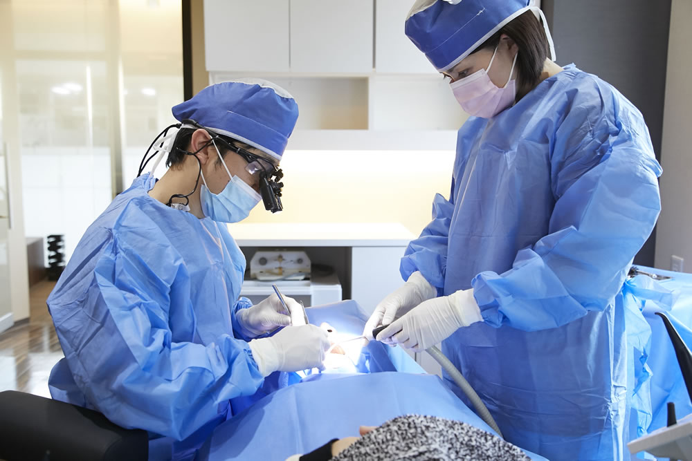 「インプラントはまずフリーハンドで基本できなきゃ駄目だ。その前に親知らずを綺麗に抜いて綺麗に縫合しなさい。」